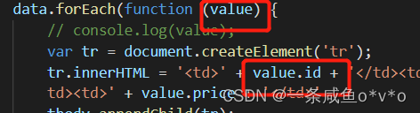 tr.innerHTML = '<td>' + value.id + '</td><td>' + value.pname + '</td><td>' + value.price + '</td>'
