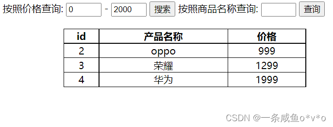 class="search-price">搜索</button> 按照商品名称查询: <input type="text" class="product"> <button
