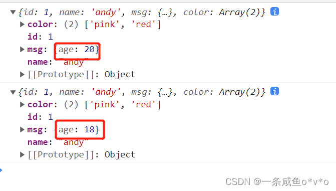 如果是浅拷贝,遇到更深层次的对象,只是拷贝了它的地址,如果修改了拷贝了的对象的复杂数据类型的属性值,被拷贝的对象的复杂数据类型的属性中同样会发生改变