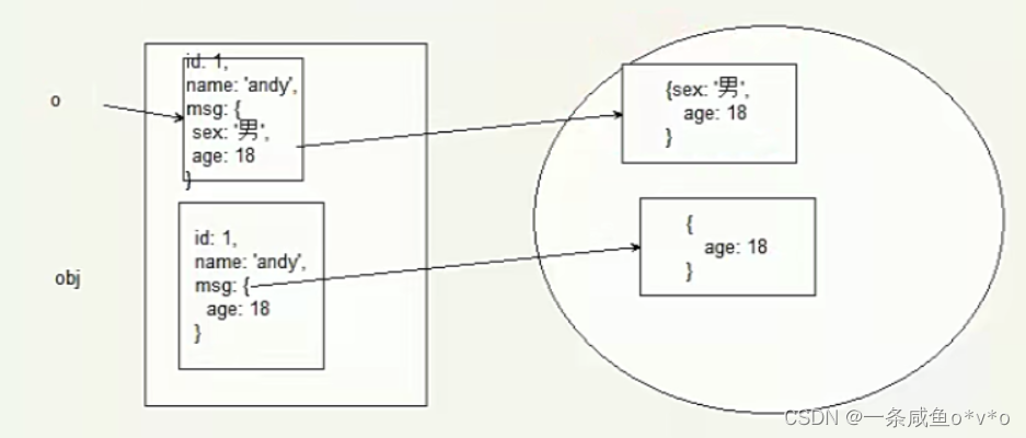 深度拷贝:将被拷贝对象(obj)里的复杂数据类型里面的数据完全赋值一份给拷贝给的对象(o),如果改变里o里复杂数据类型里的属性,不会影响被拷贝的对象(obj)