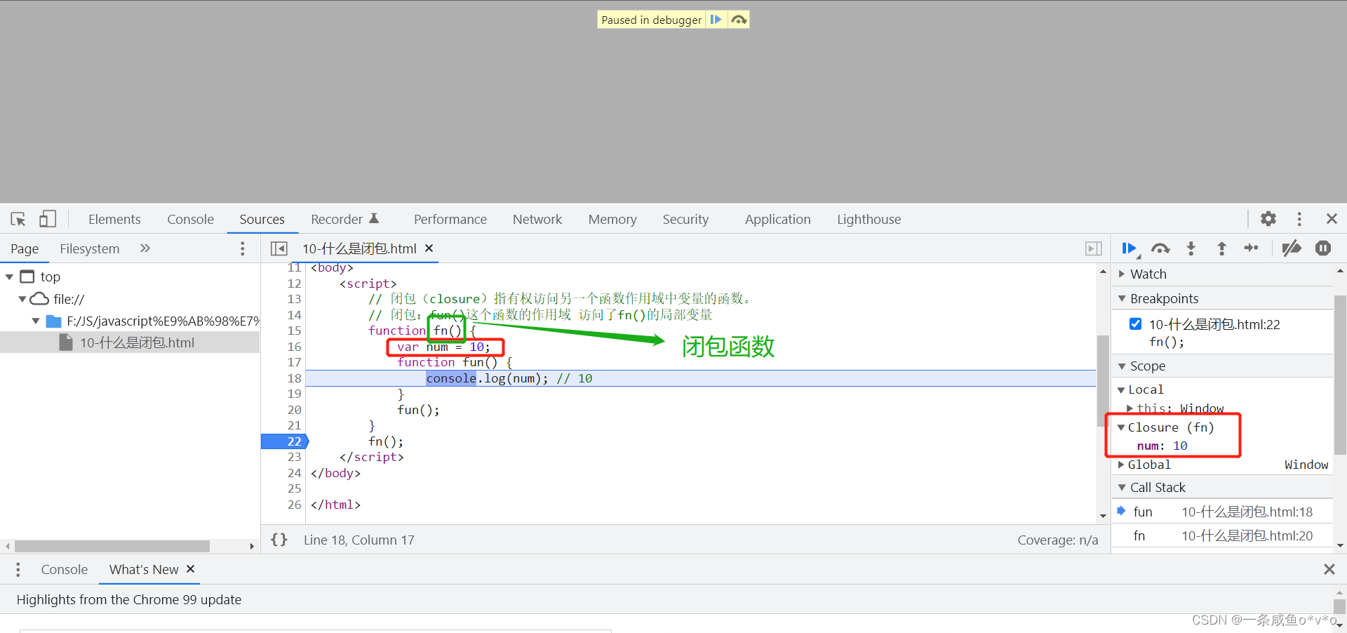 function fn() { //num这个变量所在的函数就是一个闭包函数