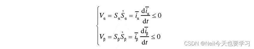 根据 Lyapunov 稳定性定律,使滑模观测器可以有效收敛到滑模面,必须满足下式: