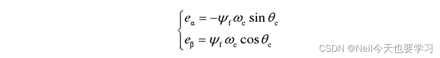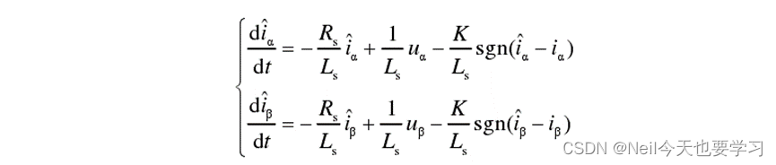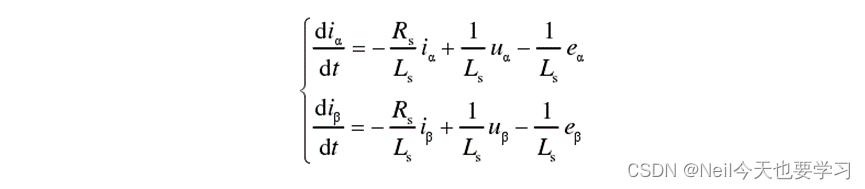 由永磁同步电机数学模型(SPMSM)可知,永磁同步电机在α-β两相静止坐标的状态方程为: