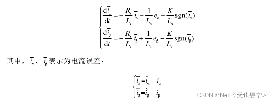 将滑模观测器控制模型与电机数学模型相减,可得滑模观测器状态误差方程为: