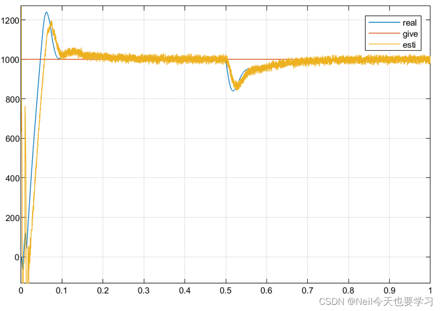 仿真工况:电机空载零速启动,0s阶跃给定转速1000rpm,0.5s施加额定负载