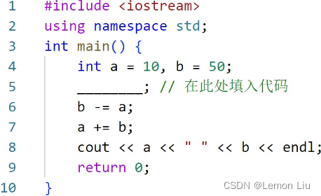 13. 在下列代码的横线处填写(),使得输出是`50 10`。 (C)