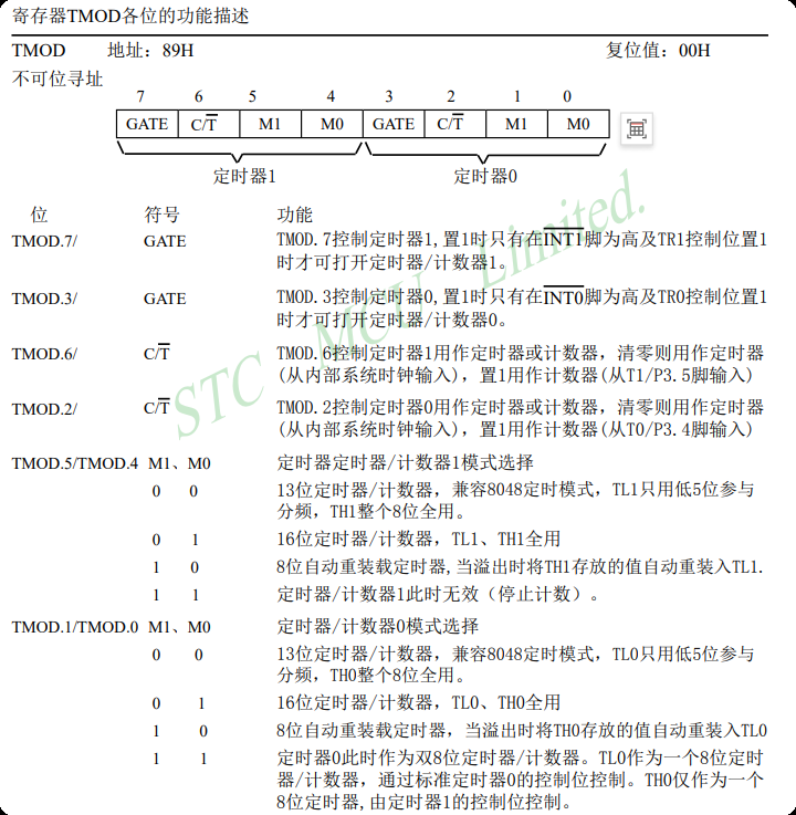 定时器的原理是一个加法器,通过晶振分之一开始加,直到溢出,发生中断;(通过计数器初值来设置中断时间)