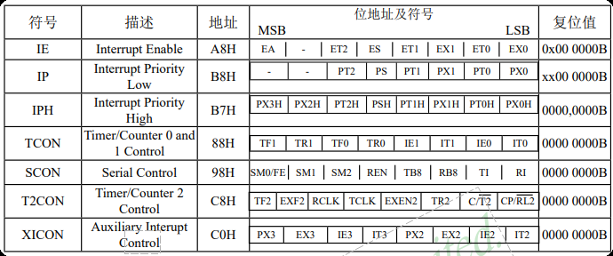 (二)中断优先级控制寄存器IP/XICON和IPH
