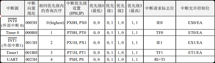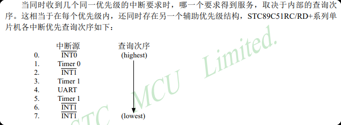 (5)相同优先级的中断源谁的数字小先响应谁;