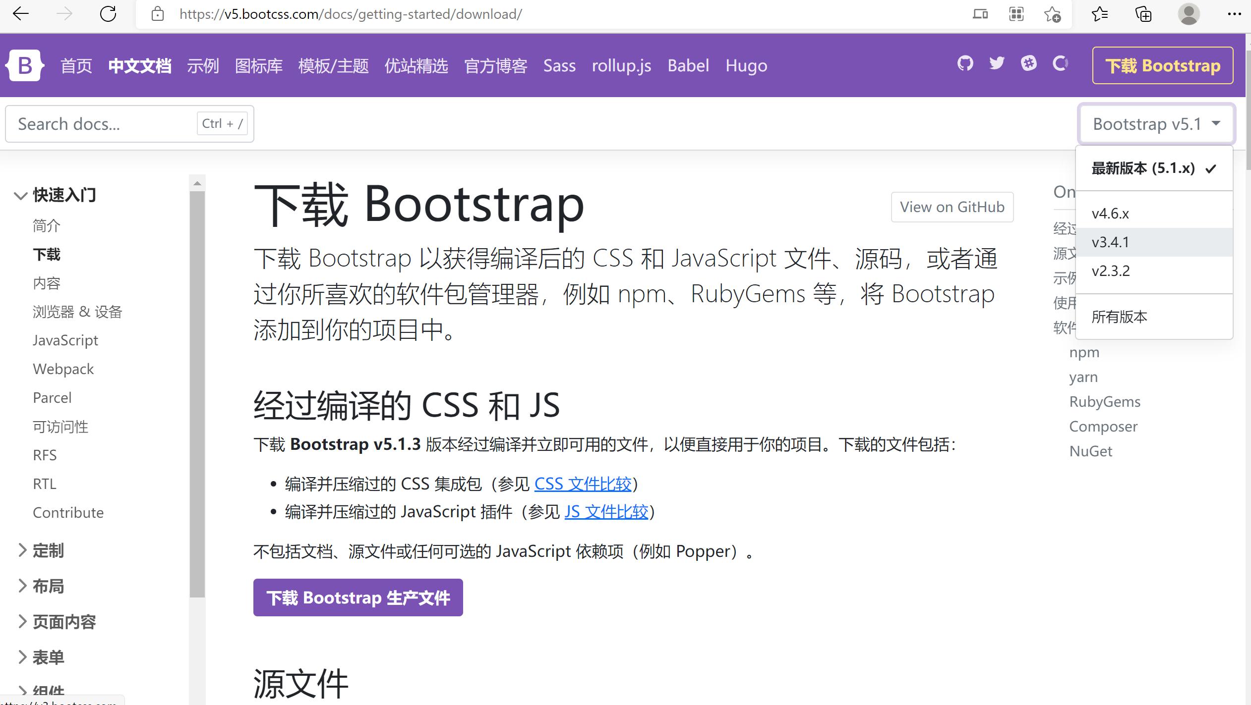 点击下载第一个(用于生产环境的 Bootstrap)即可