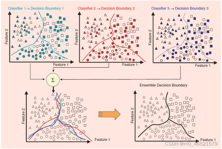 相同的多个基学习器不会带来任何提升,不同的模型取长补短,每个基学习器都会犯不同的错误,综合起来犯错的可能性不大。