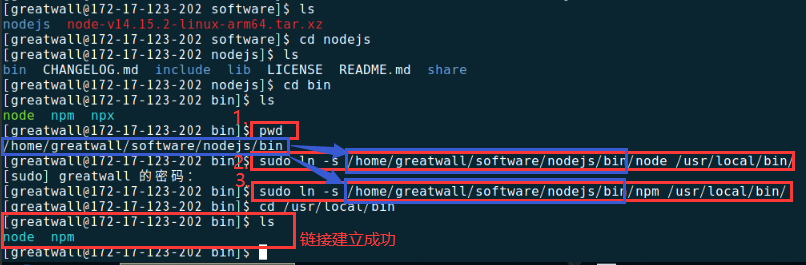命令建立软链接。注意,由于是建立全局,因此需要使用到sudo