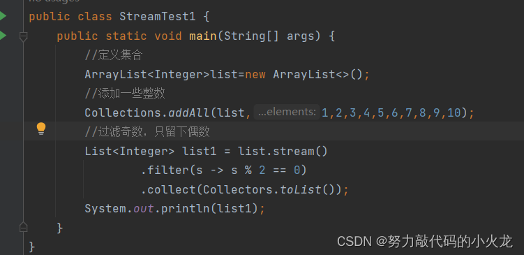 一、定义一个集合,并添加一些数 1,2,3,4,5,6,7,8,9,10过滤奇数,只留下偶数。并将结果保存起来