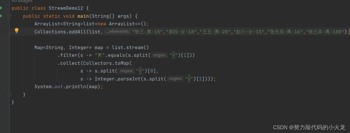 例子:收集Map集合当中。把所有的男性收集起来。键:姓名, 值:年龄。