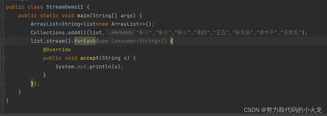 方法体:对每一个数据的处理操作(打印)