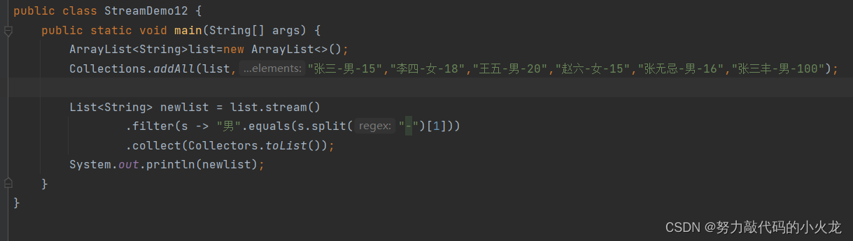 例子:收集到list集合中,把所有男性收集起来