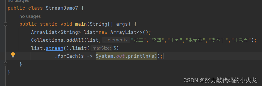 Stream<T>limit(long maxSize) 获取前几个元素