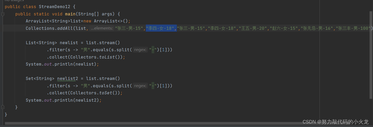 例子:收集到set集合中,把所有男性收集起来