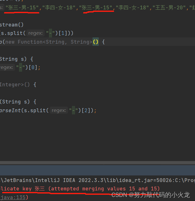 注意:如果我们要收集到Map集合当中。健不能重复。否则会报错