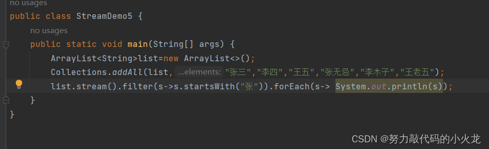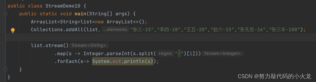 中间方法,返回新的Stream流,原来的Stream流只能使用一次,建议使用链式编程👇