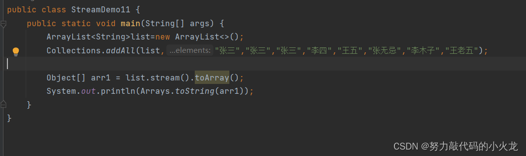 toArray方法的返回值:是一个装着流里面所有数据的数组