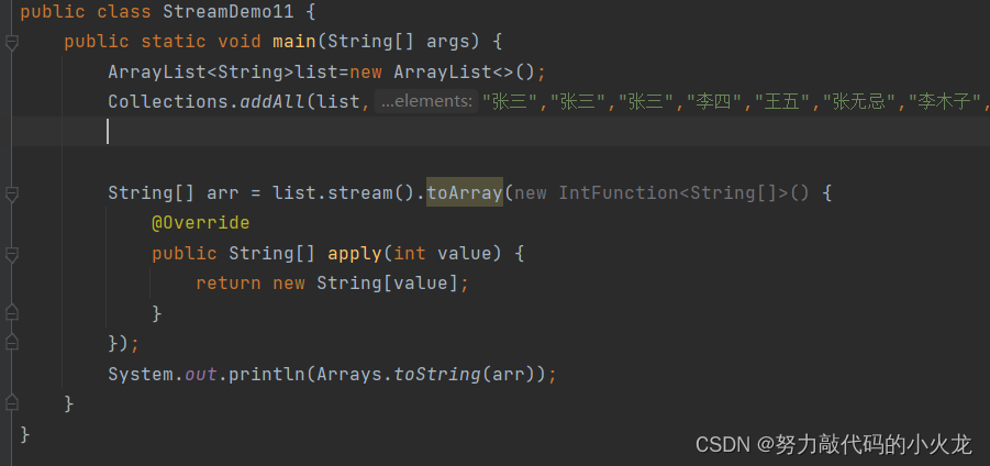 toArray() 收集流中的数据,放到数组中