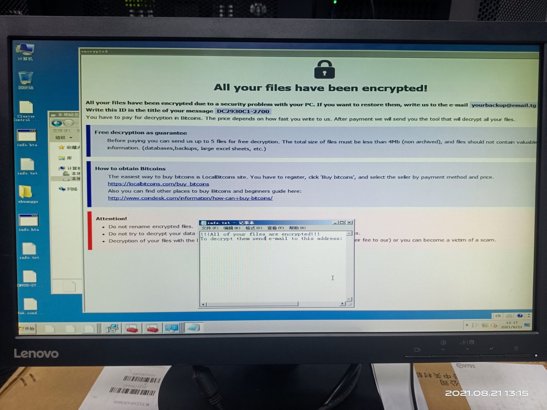 旱鸭子下水抓“”,献丑了——勒索病毒应急