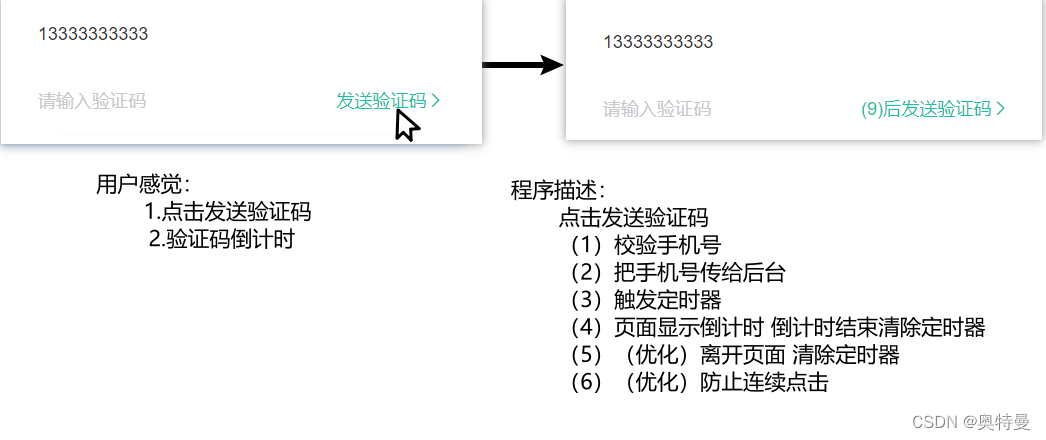 当然 这只是没有做过优化的一个发送验证码,如果要考虑点击连续点击或者离开页面时销毁定时器 还要加一些功能