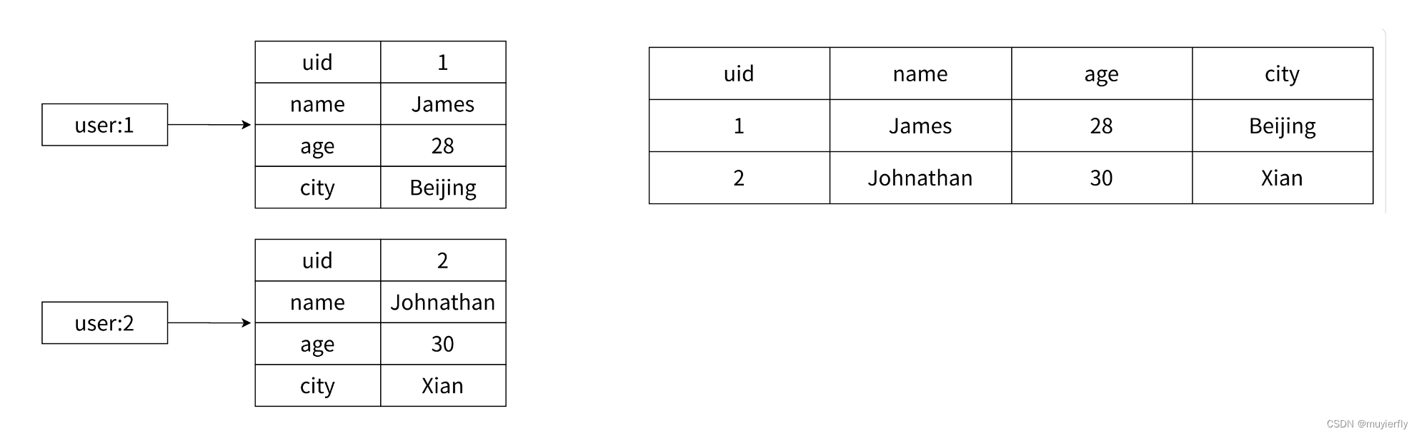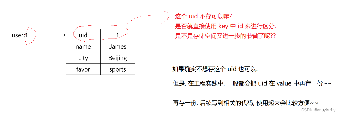 - 如果使用 string(ison)的格式来表示 Userlnfo万一只想获取其中的某个 field, 或者修改某个 field ~~就需要把整个 json 都读出来, 解析成 对象,操作 field,再重写转成 json 字符串,再写回去~~