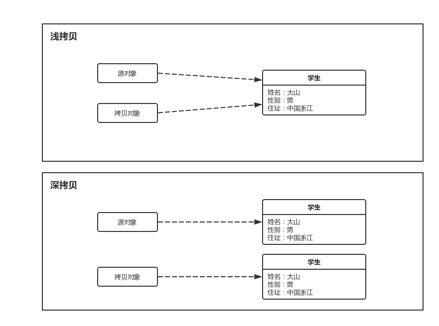 在Java语言里,当我们需要拷贝一个对象时,有两种类型的拷贝:浅拷贝与深拷贝。浅拷贝只是拷贝了源对象的地址,所以源对象的值发生变化时,拷贝对象的值也会发生变化。而深拷贝则是拷贝了源对象的所有值,所以即使源对象的值发生变化时,拷贝对象的值也不会改变。