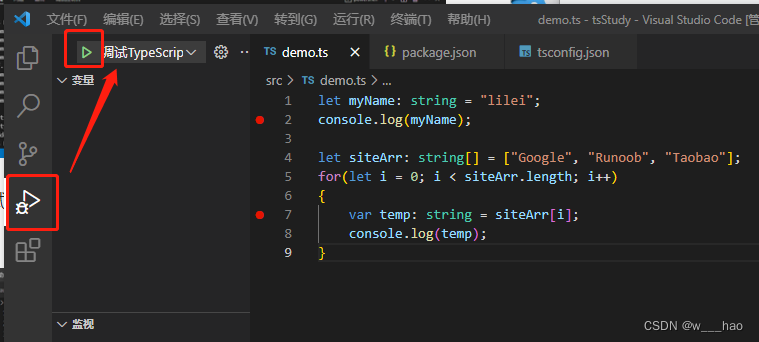 "name": "调试TypeScript", // 配置名称,显示在启动配置下拉菜单中