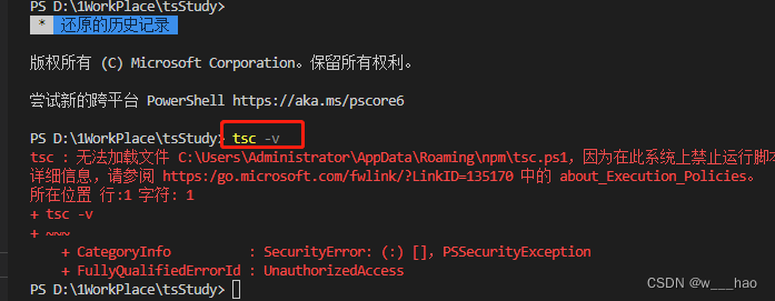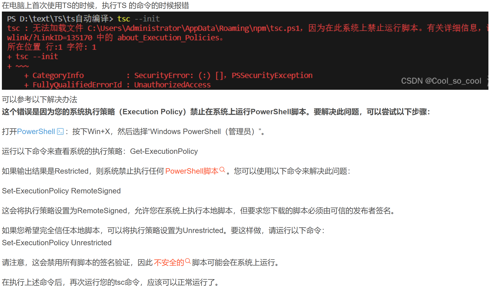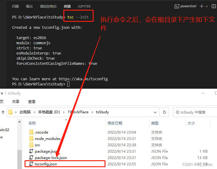 注意:如果执行该命令之后报如下错误,请先按照如下链接解决该错误之后再次执行“tsc --init” 命令。tsc --init报错参考链接