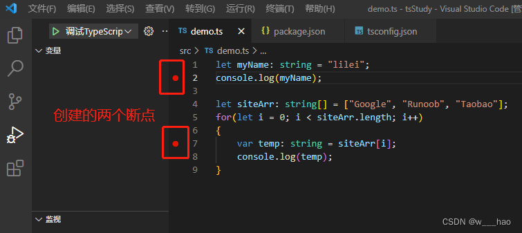 1、在上述创建的ts文件中,在需要跟踪调试的代码行前面点击下会出现小红点,说明成功创建了一个断点,如下所示: