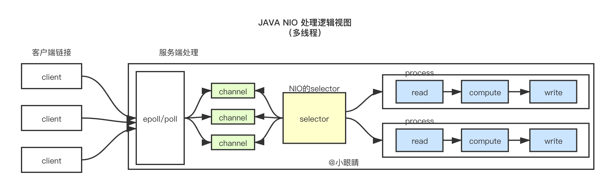 简单理解,参考 NIO 多线程加入线程池处理所有的processHandler ,可以利用 CPU 多核心加快业务处理,代码不再赘述。