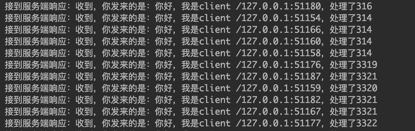 写一个client ,模拟 50 个线程同时请求 server 端,在 readHandler 中模拟了随机sleep。client代码: