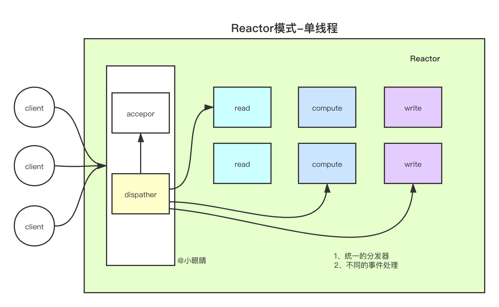 已经基本上实现了 Reactor 的单线程模式,我们把示例代码再做一些改造: