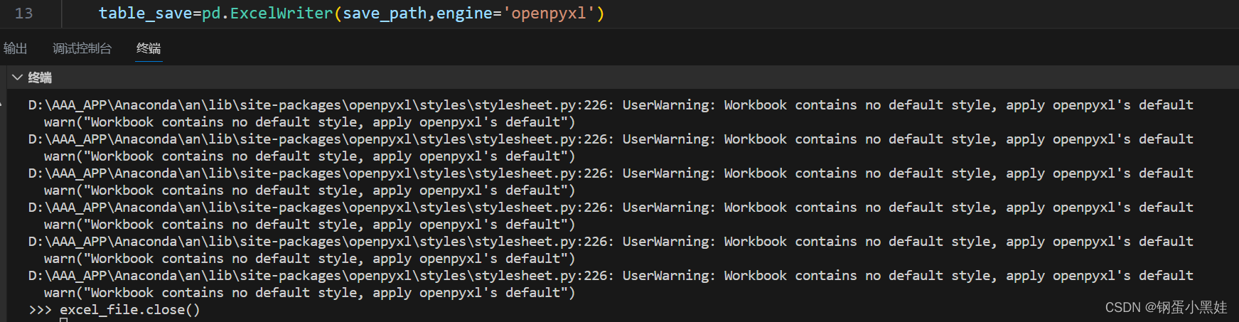 python打开excel文件有警告UserWarning: Workbook contains no default style......的原因和解决方案 要打开的excel文件并不是手动创建的excel表格,而是通过java程序生成的,也就是不是通过常规的Microsoft EXCEL方法创建的。用excel程序,打开保存一下这个文档,使该文档程序属性变成Microsoft EXCEL,同时应该也保存了默认的excel样式。在用python打开一个excel文件时会有这个长串的警告,不影响程序正常运行,但是看着很难受,想要解决这个问题。警告的含义大概是:用户警告:工作簿不包含默认样式,请应用openpyxl的默认样式。
