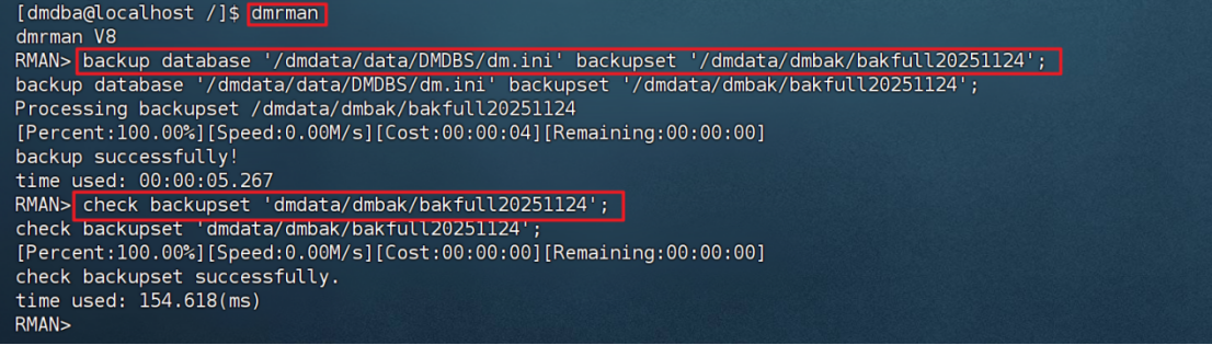 backup database '/dmdata/data/DMDBS/dm.ini' backupset '/dmdata/dmbak/bakfull20251124';
