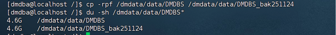 cp -rpf /dmdata/data/DMDBS /dmdata/data/DMDBS_bak251124