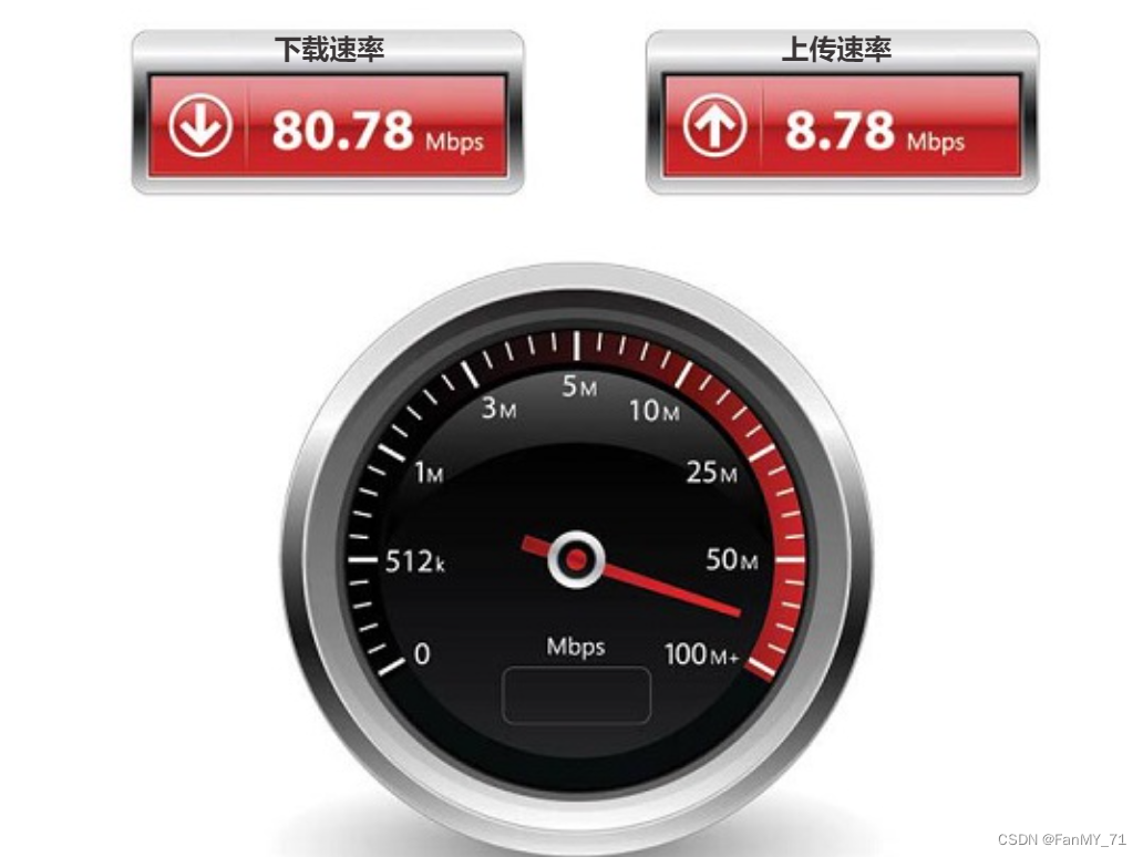 许多在线速率测试可以测出互联网连接的吞吐量。图中提供了一个速率测试结果的示例。