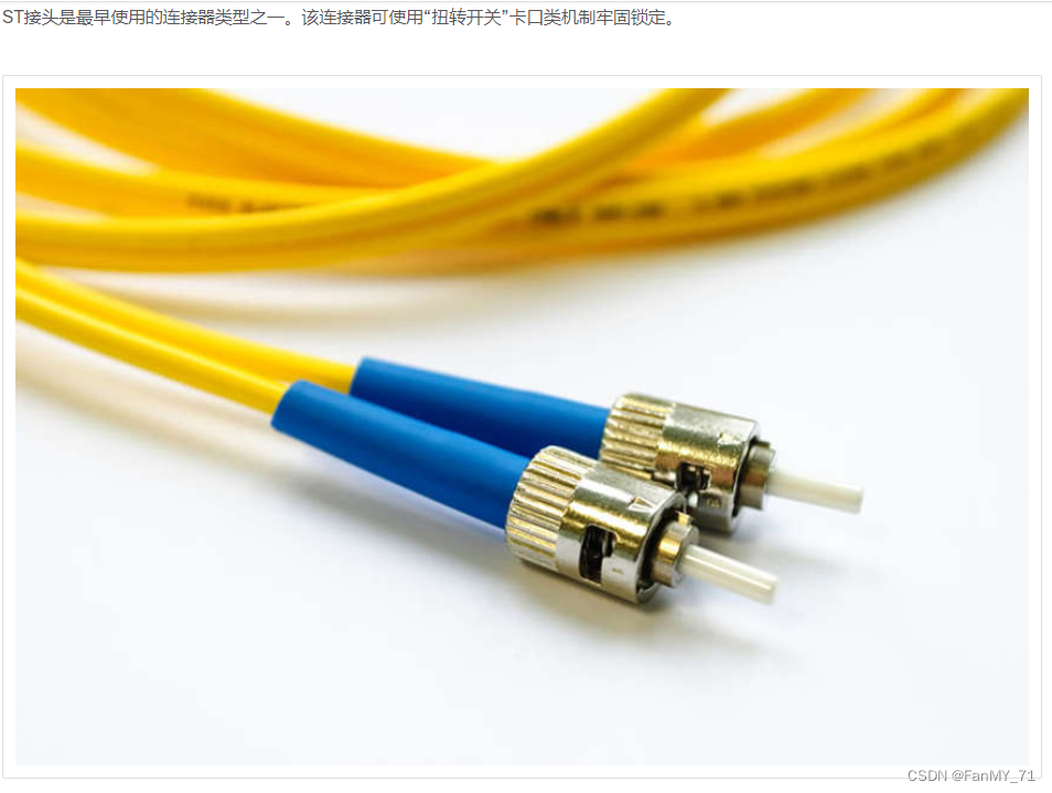 光纤连接器在光纤末端连接。有多种类型的光纤连接器。各种连接器类型的主要区别在于尺寸和耦合方式。企业根据其装备来决定将要使用的连接器类型。