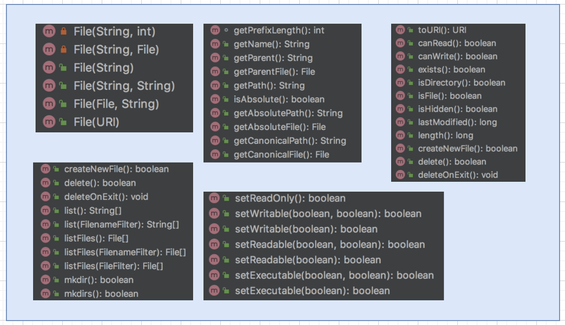 上述案例使用了File类中的基本构造和常用方法(读取、判断、创建、删除)等,JDK源码在不断的更新迭代,通过类的构造器、方法、注释等去判断类具有的基本功能,是作为开发人员的必备能力。