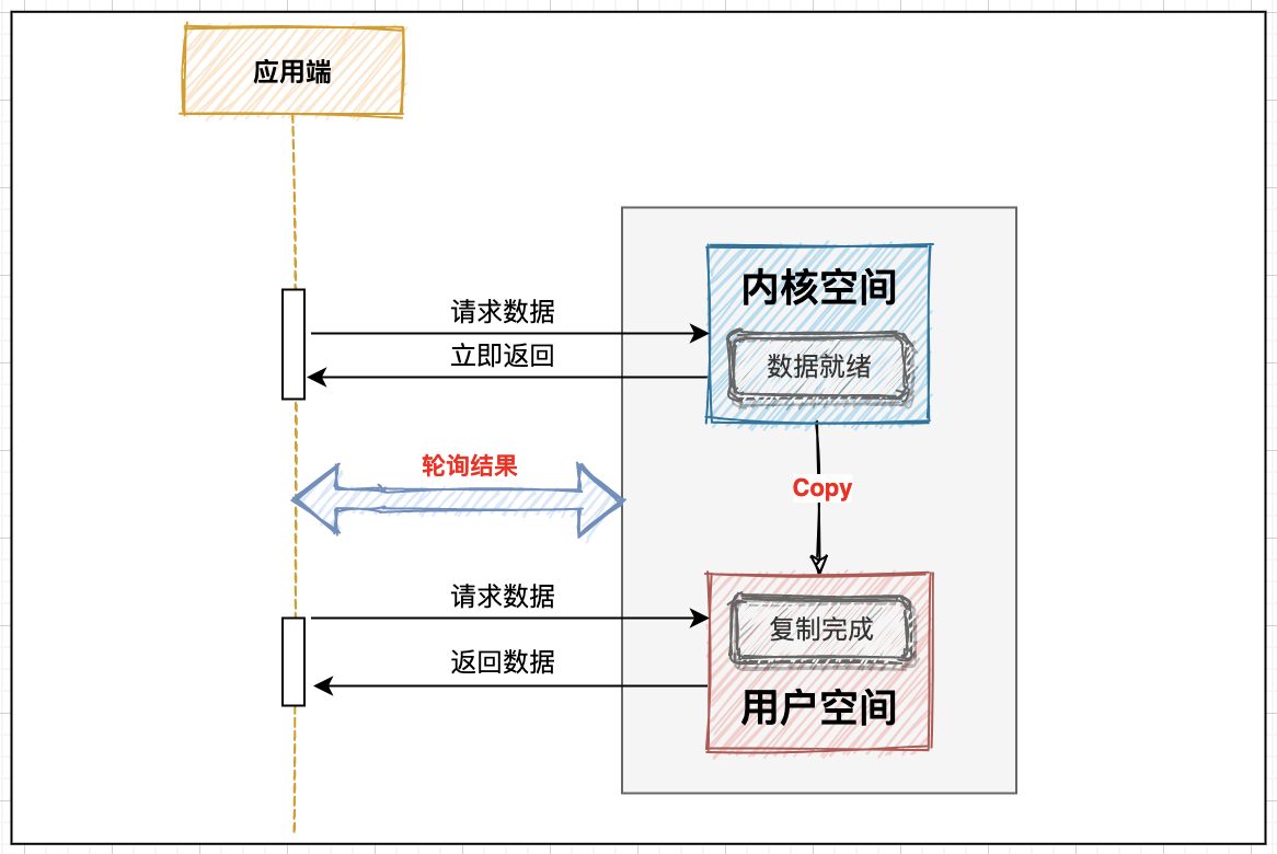 在线程请求后会立即返回,并不断轮询直至拿到数据,才会停止轮询,这种模式的缺陷也是显而易见的,如果数据准备好,在通知线程完成后续动作,这样就可以省掉很多中间交互。