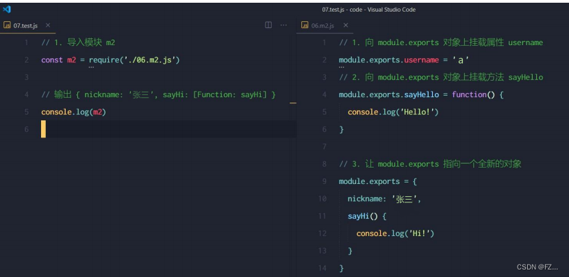 :使用 require() 方法加载其它模块时,会执行被加载模块中的代码。并且.js后缀可以省略。