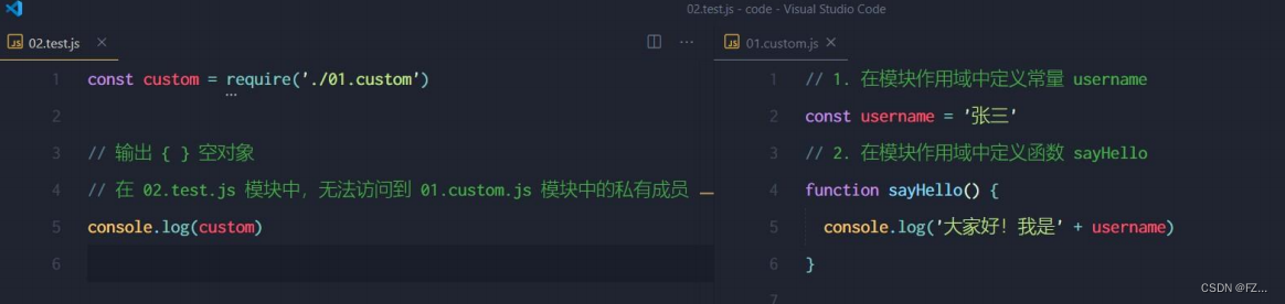 - 自定义模块(用户创建的每个 .js 文件,都是自定义模块)