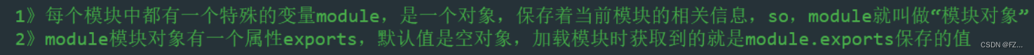 - module 变量是一个对象,它的 exports 属性(即 module.exports)是对外的接口。
