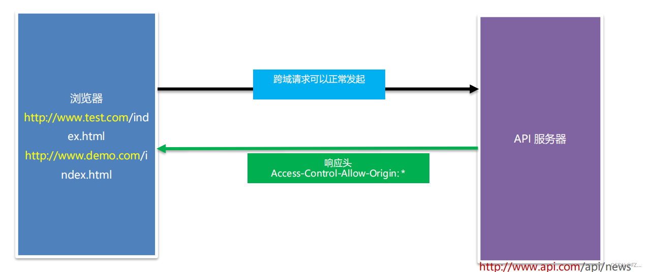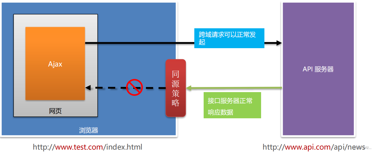 - 浏览器的 同源安全策略 默认会阻止网页“跨域”获取资源。但如果接口服务器配置了 CORS 相关的 HTTP 响应头,就可以解除浏览器端的跨域访问限制