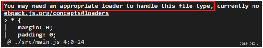 !不认识 css 文件,如果要打包处理 js 之外的静态资源,需要配置 loader 来加载预处理文件