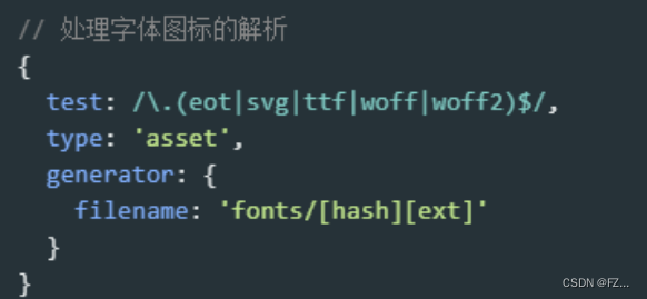 - 添加针对字体文件的加载器规则, 使用asset/resource(直接输出文件并配置路径)