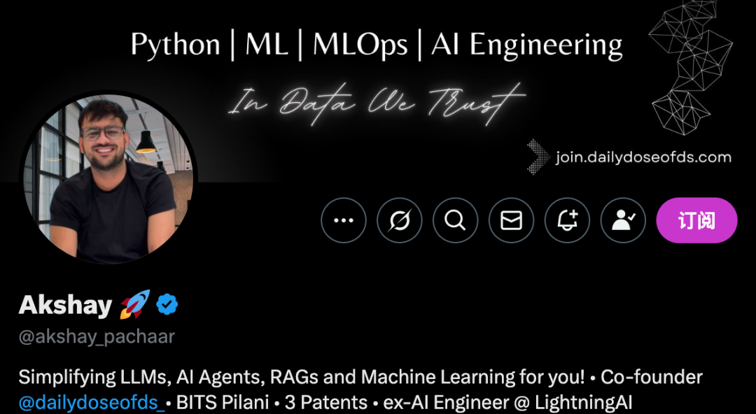 分享者是 Akshay,他是一位 AI/ML 工程师,在 x 上的介绍如下图所示: